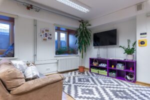 Keskuse seintel on olemas viipekeele tähestikud (sõrmendid). Noortetoas on tahvel, mille abil on võimalik kirjalikult suhelda. Tulekahju või turvahäire korral annavad sellest lisaks helisignaalile teada vilkuvad valgustid. Astmed ja uksepiidad on tähistatud kontrastse teibiga.